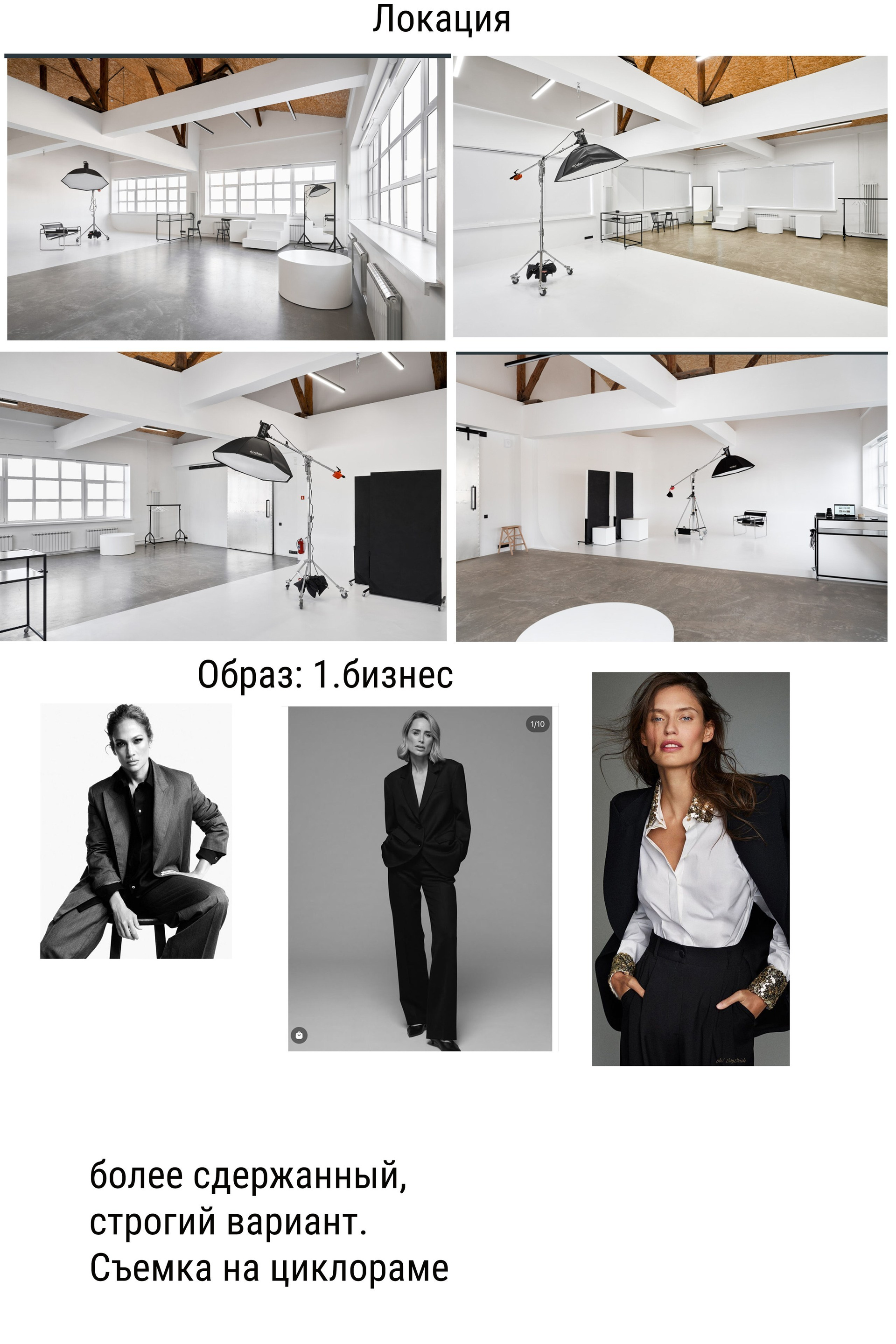 Я заранее нашел и предложил подходящую локацию, порекомендовал варианты образов и скомпоновал в мудборд для наглядности: